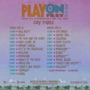 Del 24 al 26 de abril los fanáticos podrán revivir las actuaciones de artistas como Ed Sheeran, Paramore, Coldplay, Twenty One Pilots, Charlie Puth, Green Day, Bruno Mars, Death Cab For Cutie, Panic! At The Disco, Alt-J y muchos más a través de un link en Youtube. El evento comenzó el 24 de abril a las 18:00h (hora española) y durará hasta la madrugada del lunes. En total se han sumado alrededor de 65 artistas.