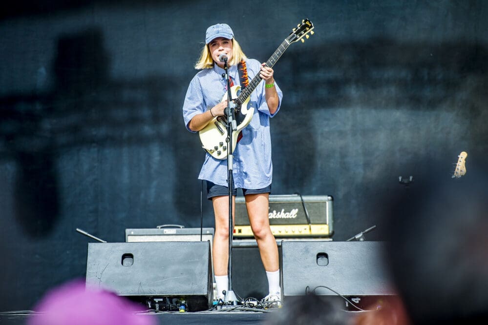 La segunda jornada del festival la abría Yawners. Hasta los más jóvenes (incluso más que el eufórico público de Rojuu el día anterior) no quisieron perderse los trallazos de rock alternativo y punk de una banda cuyo segundo disco apenas tiene un mes de vida. Elena, Teresa y Tomás presentaban “Duplo” (Montgrí, 2022) haciendo énfasis en los singles, fácilmente coreables, como Suena Mejor (que dejaron para el final), Honey o la pegadiza Rivers Cuomo. Tampoco se dejó atrás canciones “nuevas” (nótese la ironía, en palabras de Elena) como La escalera o Seaweed.